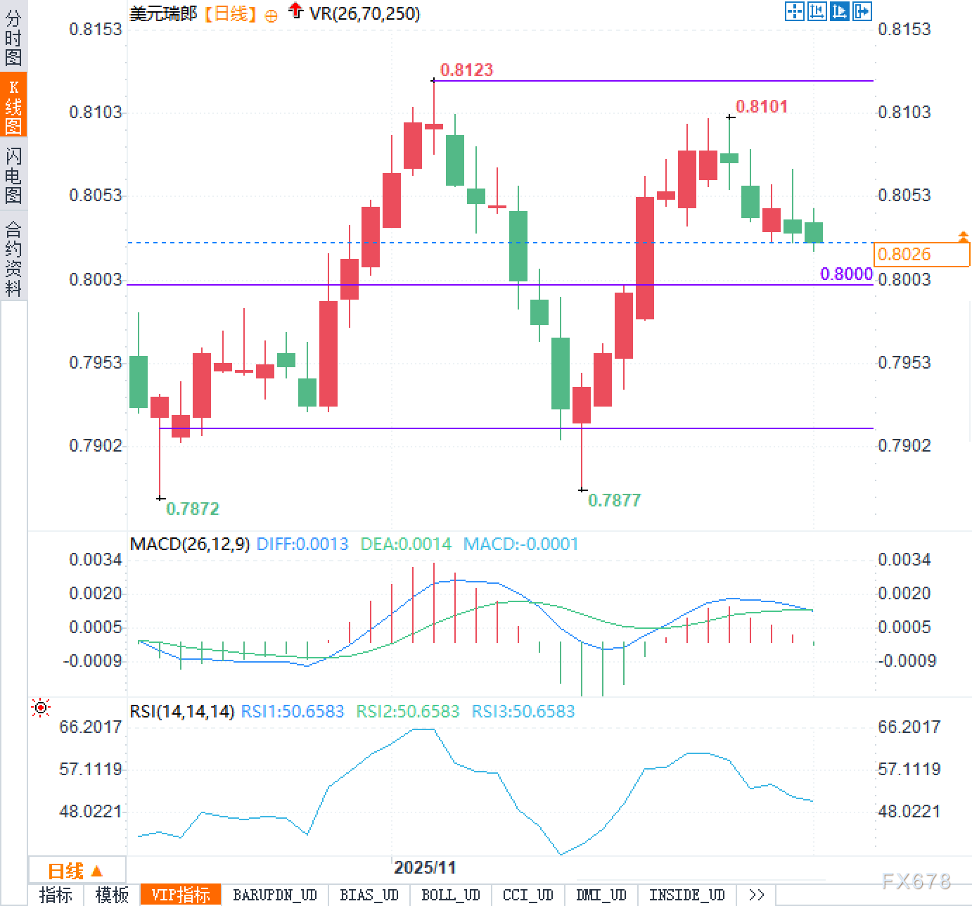 当前美元兑瑞郎的运行逻辑主要由三重因素共同塑造:一是瑞士本土经济增长动能减弱带来的基本面压力;二是全球贸易政策变动对出口导向型经济体的外溢效应;三是主要央行货币政策分化背景下的利差演变。短期内,随着美瑞关税问题初步缓解,市场焦点或将转向瑞士央行下一步政策取向及其对经济前景的评估。若后续数据显示内需持续疲弱,不排除该行释放更温和政策信号的可能性,从而为美元兑瑞郎提供上行推力。反之,若通胀压力再度抬头或金融市场波动加剧,则瑞郎可能重新获得避险买盘青睐。值得留意的是,季节性因素亦可能发挥作用,年末机构调仓与流动性收缩往往加剧汇率波动率,交易结构的变化需纳入考量范畴。