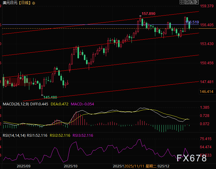 值得注意的是,周二欧洲早盘,日元曾自日内高点小幅回落,推动美元兑日元从略低于156.00整数关口的位置反弹约20点,但反弹力度孱弱,未能改变整体弱势格局。